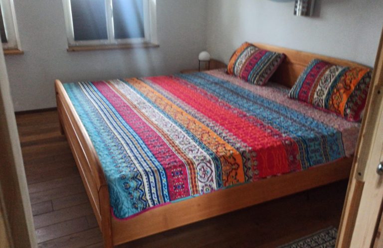 Das Erdgeschoss Schlafzimmer mit einem Kingsize Bett ist der perfekte Rückzugsort für erholsame Nächte in unserem Ferienhaus. Geräumig und komfortabel eingerichtet, bietet es Ihnen ein hohes Maß an Bequemlichkeit und Ruhe, ideal für Paare oder Familien. Der direkte Zugang zum Garten ermöglicht es Ihnen, die frische Luft und die natürliche Umgebung zu genießen. Bei uns finden Sie alles, was Sie für einen entspannten Aufenthalt benötigen – hochwertige Bettwäsche, einen Kleiderschrank sowie ausreichend Platz für Ihr Gepäck. Buchen Sie jetzt und erleben Sie eine unvergessliche Zeit in unserem Ferienhaus!